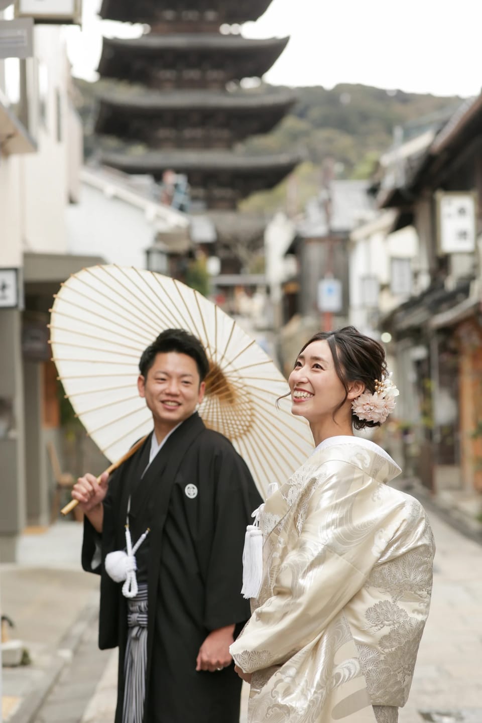 祗園擁有京都特有的石板小路與町家建築,充滿傳統風情。無論和服或洋裝,都能拍攝出展現古都情調的婚紗照。白川沿岸與巽橋周邊的景致四季皆美,是能捕捉優雅畫面的絕佳地點。