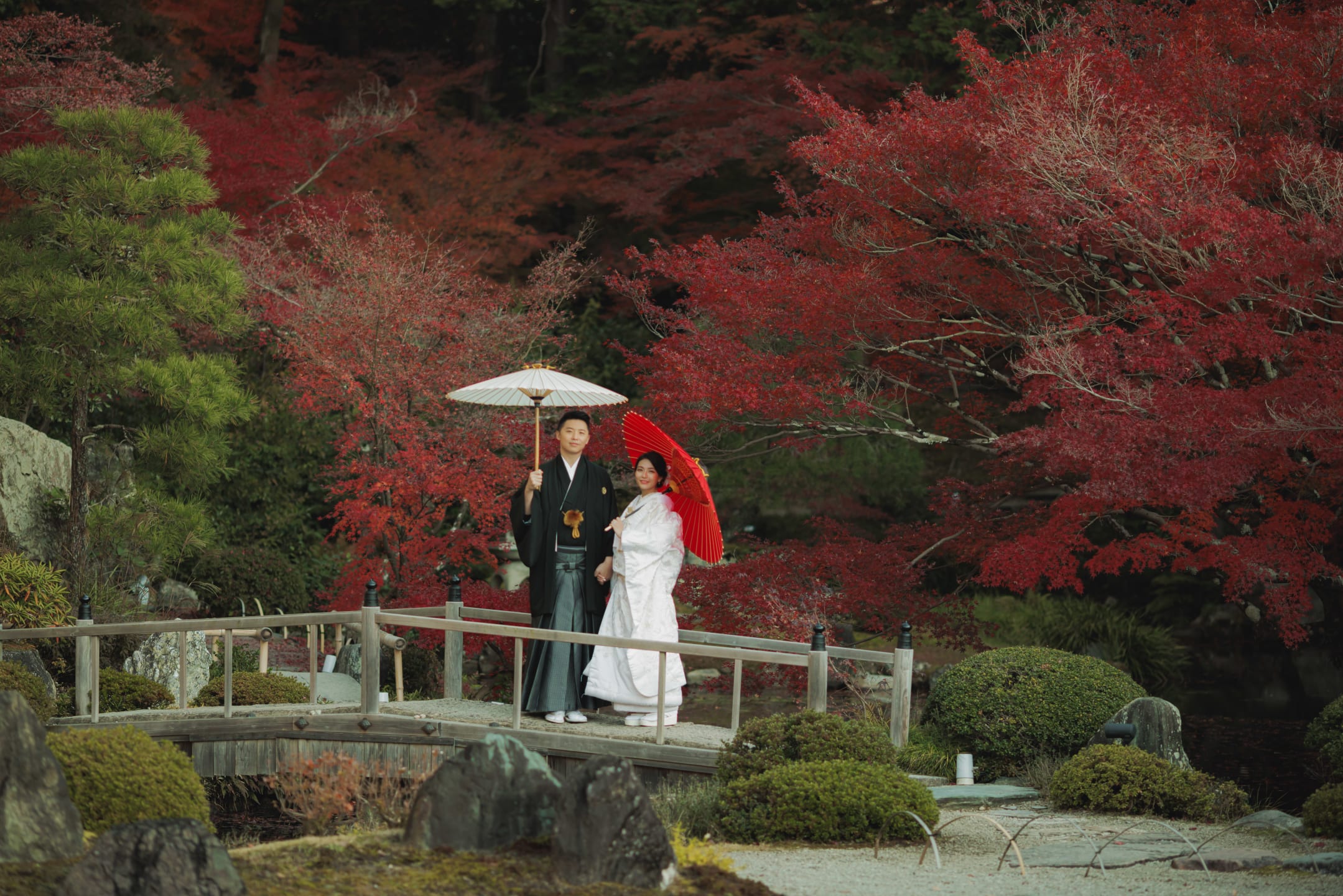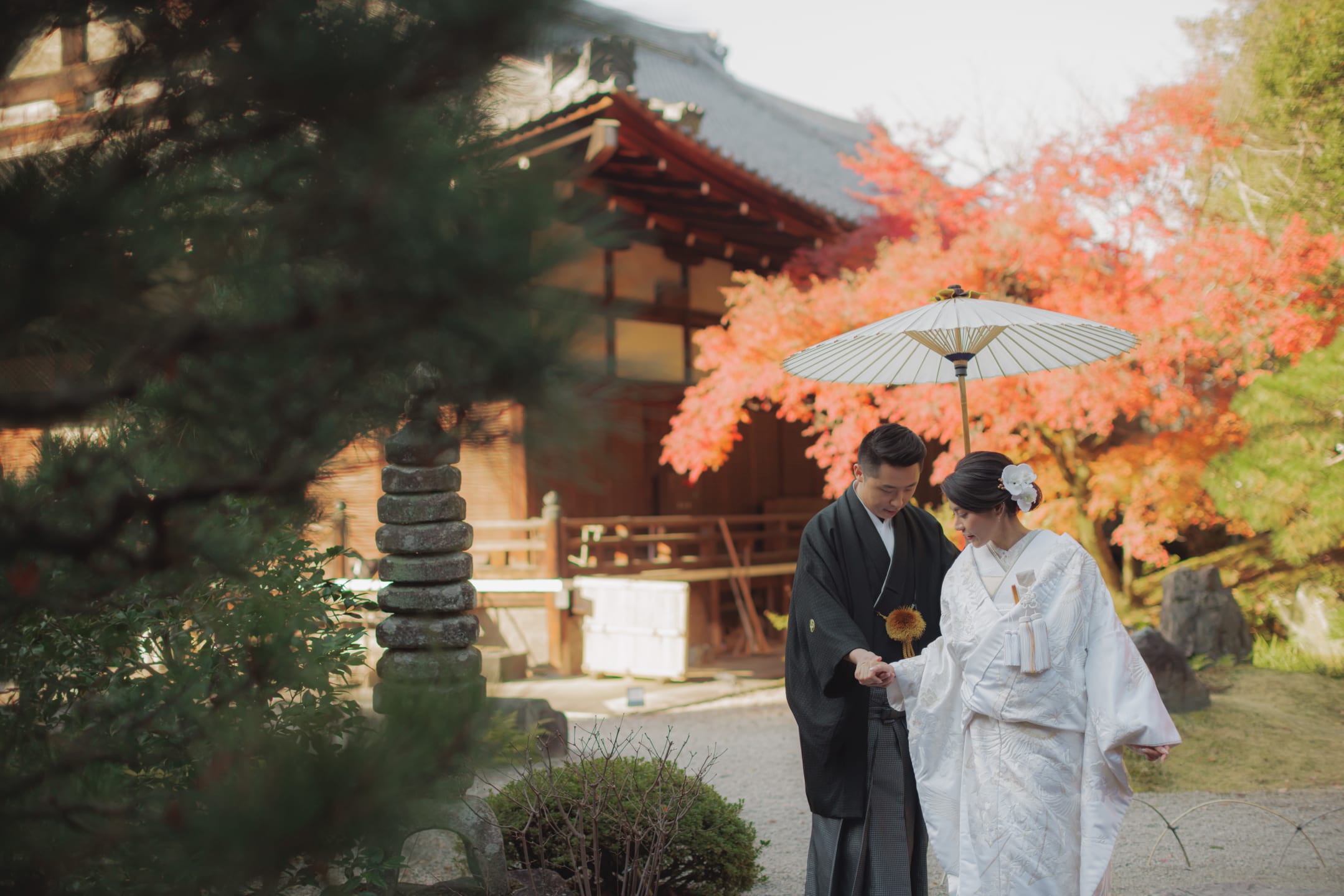 金戒光明寺是一座歷史悠久的古剎,厚重的石造建築與苔庭為拍攝提供沉穩的背景。與和服極為契合,可拍出莊嚴而富格調的婚紗照片。