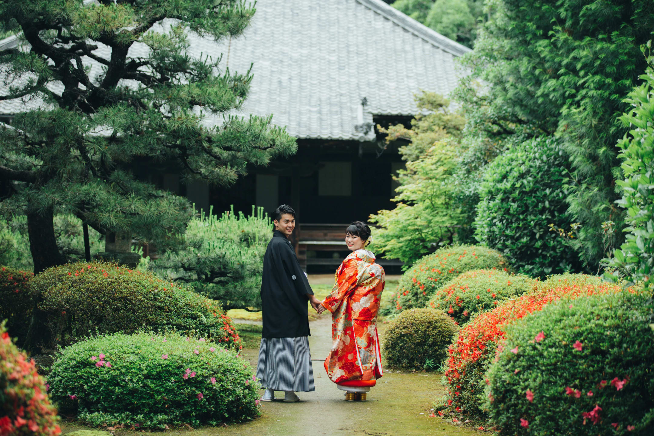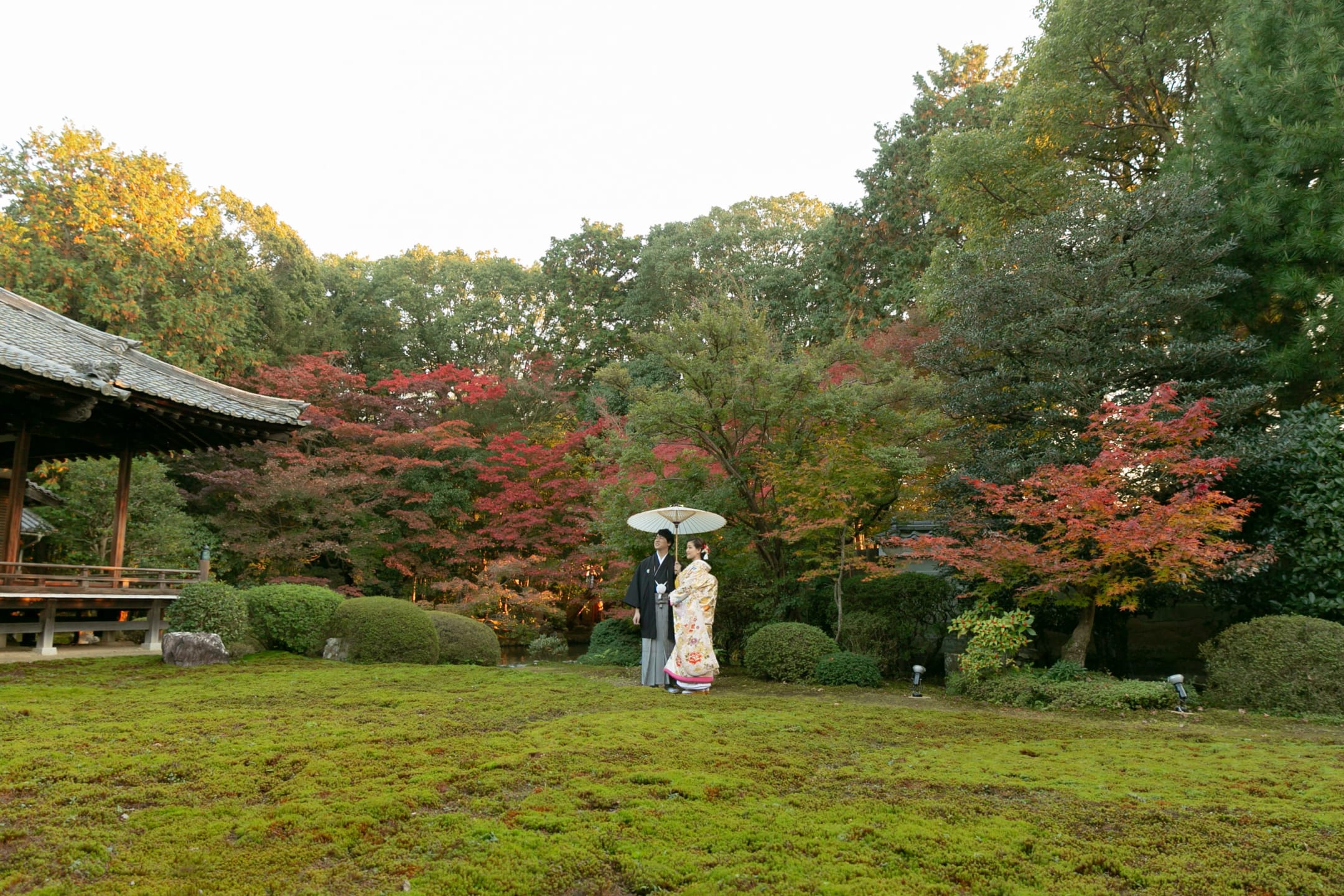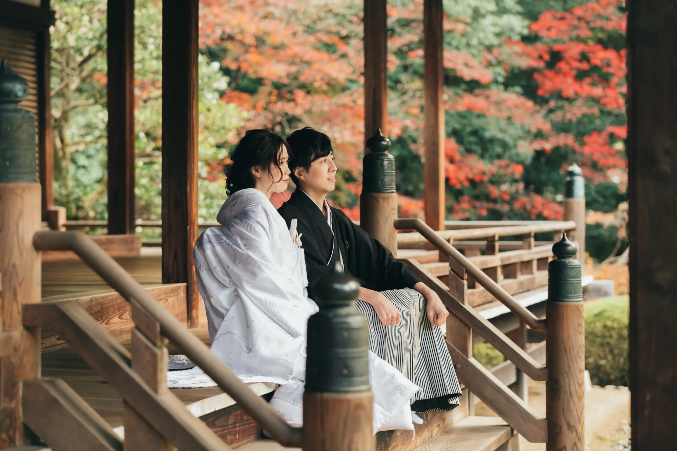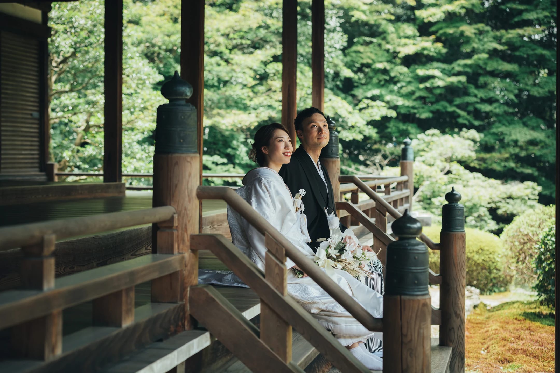 嵐山的竹林步道以綠意隧道般的景觀著稱,是和服與洋裝皆適合的夢幻場景。隨著季節變化,光線的表情也不同,能拍出靜謐且自然的婚紗照。