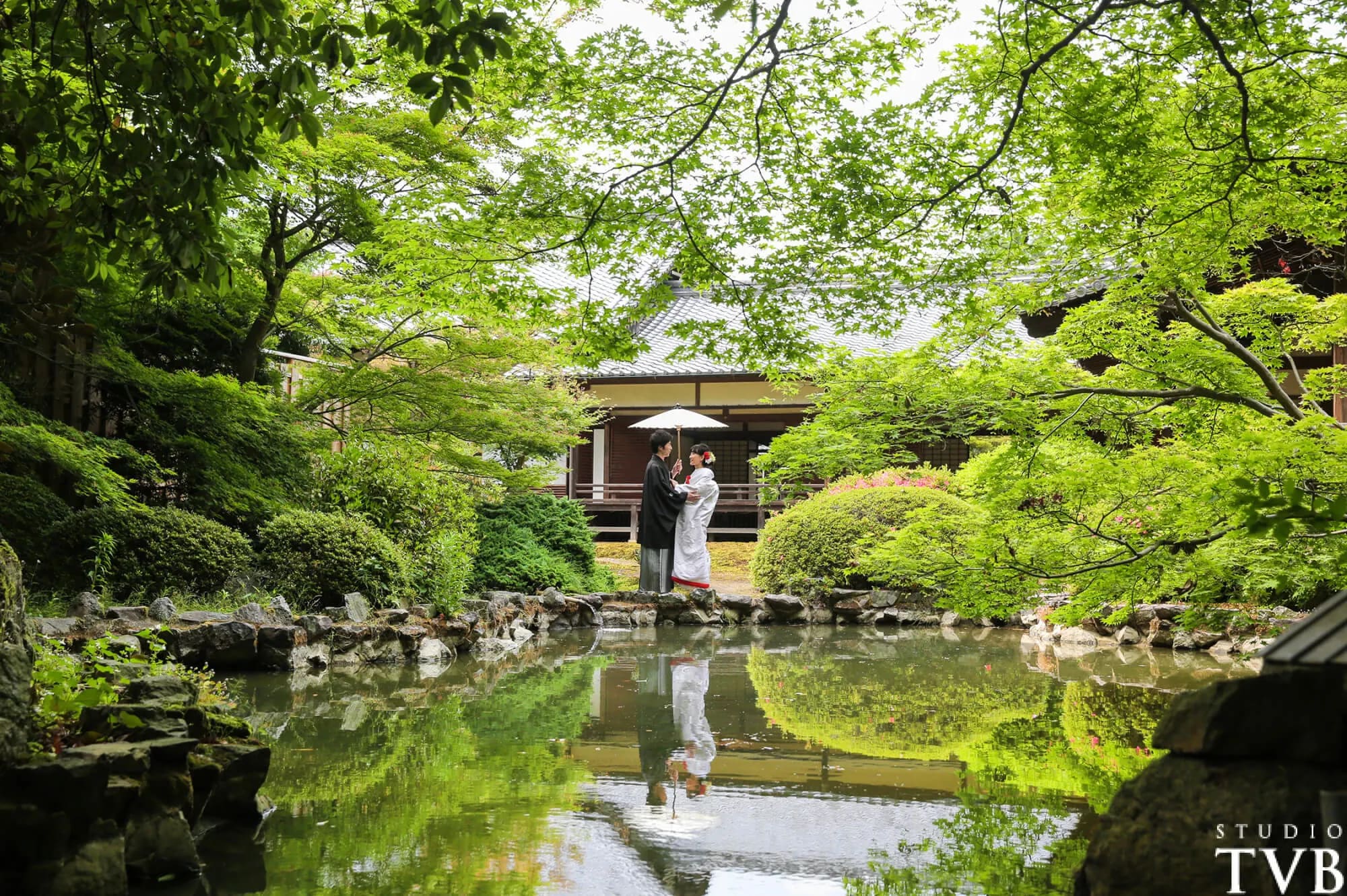 祗園擁有京都特有的石板小路與町家建築,充滿傳統風情。無論和服或洋裝,都能拍攝出展現古都情調的婚紗照。白川沿岸與巽橋周邊的景致四季皆美,是能捕捉優雅畫面的絕佳地點。