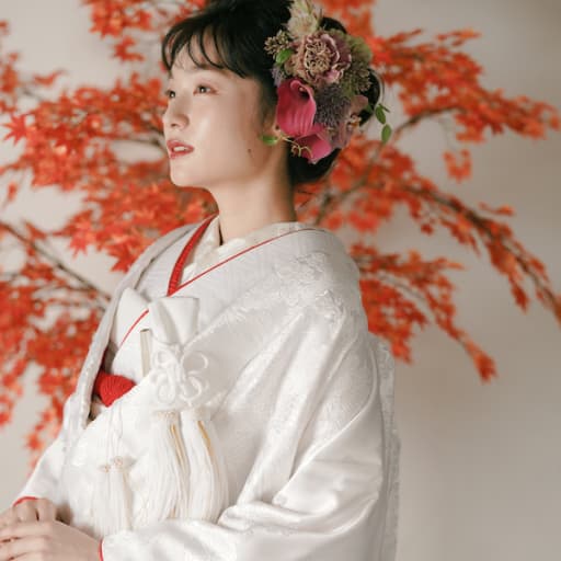 いくつになっても、一生に一度の瞬間を懐かしんでもらいたいから 新婦様に寄り添って、”自分らしさ”を大切にしたご提案を心掛けています🕊️ 衣装合わせから当日まで、楽しい時間を一緒に過ごしていただけたら嬉しいです🙌 美容師として7年の経験を積み、ブライダルの世界に飛び込みたくさんの花嫁さまを担当してきました👰♀️💐 明るく親しみやすい性格なので、どんなことでも気軽にご相談ください。 お二人の特別な思い出のお手伝いができるのを楽しみにしています。 お支度から楽しくリラックスしていきましょ〜 ※生花を使用したアレンジもご相談ください