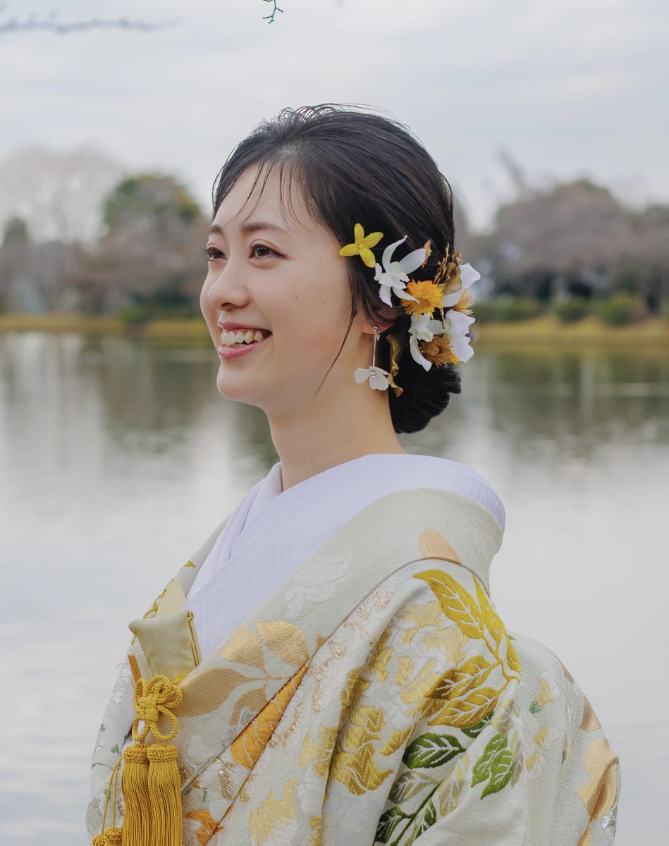 ブライダルの世界で、ヘアメイク着付けの 仕事について、10年以上になります。 メイクは、フワッとと柔らかい雰囲気を目指してます。 数多くの花嫁様を担当させて頂いた経験から、 その方の輪郭や髪質の特徴を生かしての "似合わせ" をすることも大切にしています。 シンプルな中にも、華やかさを兼ね備えたスタイルが好きです✨ お二人にあったイメージや、雰囲気を提案させてください! 安心してなんでもご相談頂けたら嬉しいです。