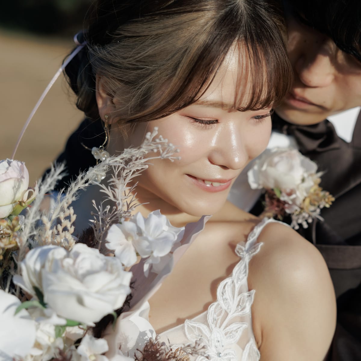 ご結婚おめでとうございます🍃ヘアメイク藤井です! 7年間式場での経験があり ヘアメイク、ブライダルエステ、アイリストとトータルでお支度させていただいてました🌷 ご新婦様のお悩みに合わせて ◾︎多幸感ある似合わせメイク ◾︎お顔の骨格に合わせたヘアスタイル ◾︎骨格に合わせて綺麗なドレスの着せ方、ご提案 心がけております! 撮影に向けて ◾︎トータルでの美容や衣装のご相談 ◾︎造花使用してのヘアアレンジ (生花の花材のオススメもご案内できます!) ◾︎雰囲気に合わせたヘアメイクのご提案 (ご新郎様のヘアメイクもぜひ!) に関しては、ぜひお任せください!◎ 一生に1度の大イベントです。沢山悩んで 『撮影してよかった』 と思っていただけるようお手伝いさせていただきます。 お二人の特別な思い出になるように 楽しく笑いある撮影を一緒に作りましょう!
