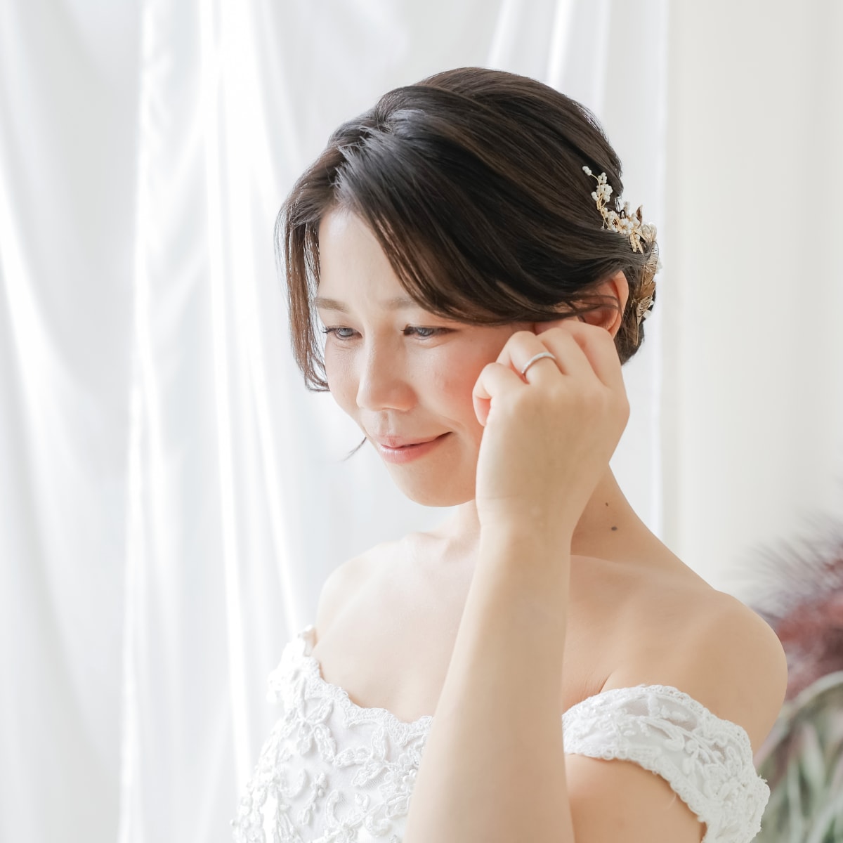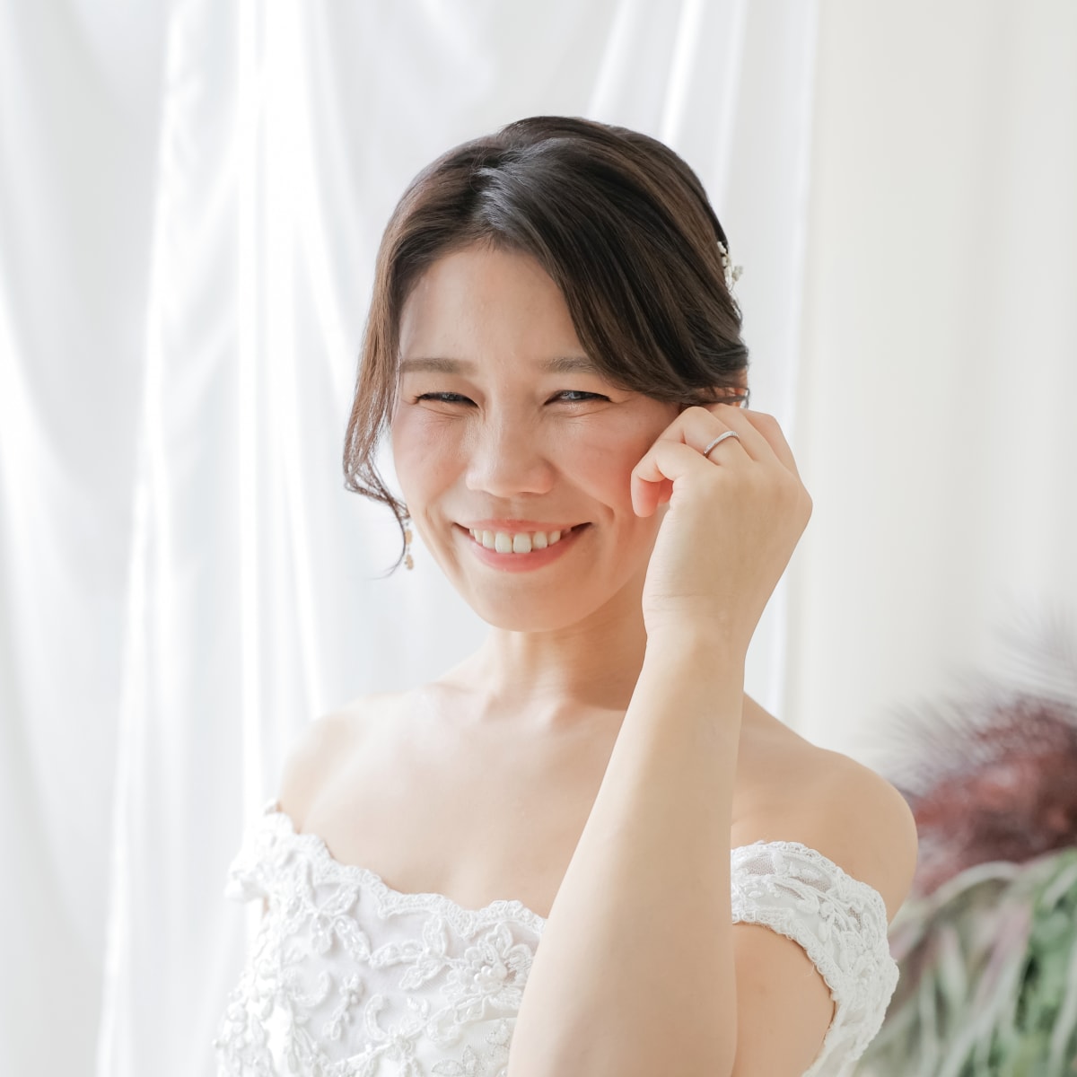 大人かわいいナチュラル系、 上品なツヤ感のあるハイライト好きです! 新婦様の持つ可愛らしさを活かしながら、 さらに可愛く仕上げていきます🤍 素敵な1日のお手伝いさせてください!